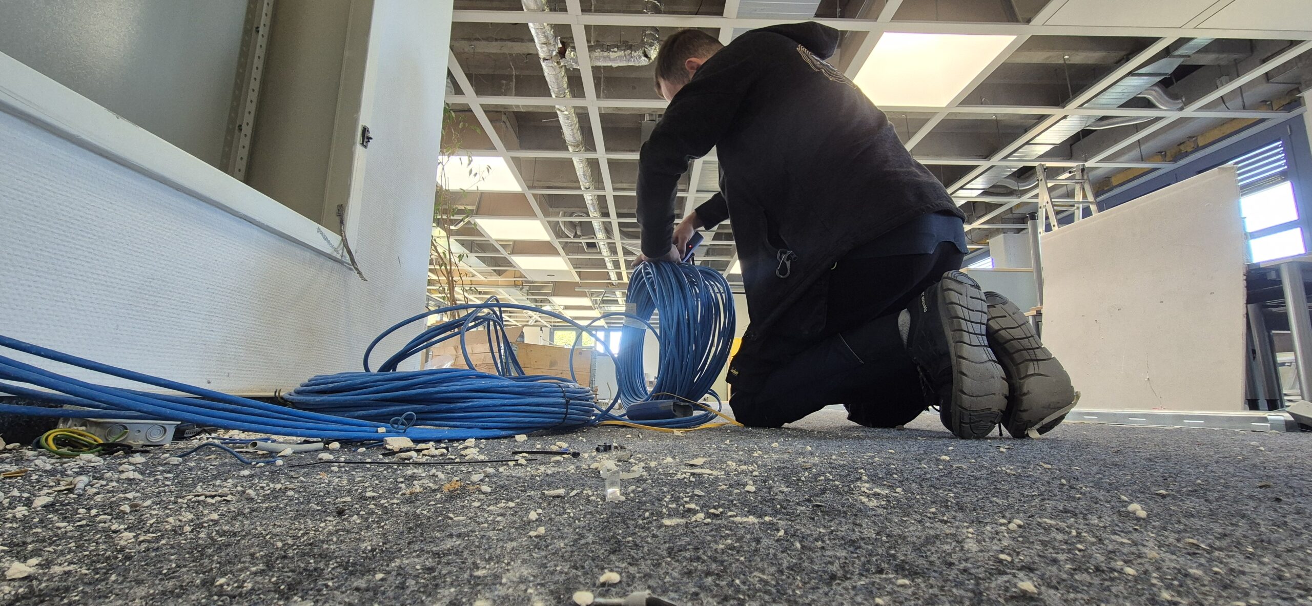 rozprowadzenie LAN–u w biurach oraz połączeń do maszyn produkcyjnych