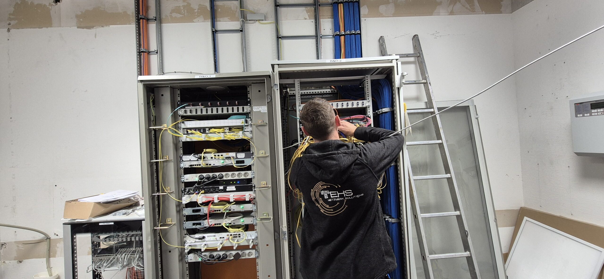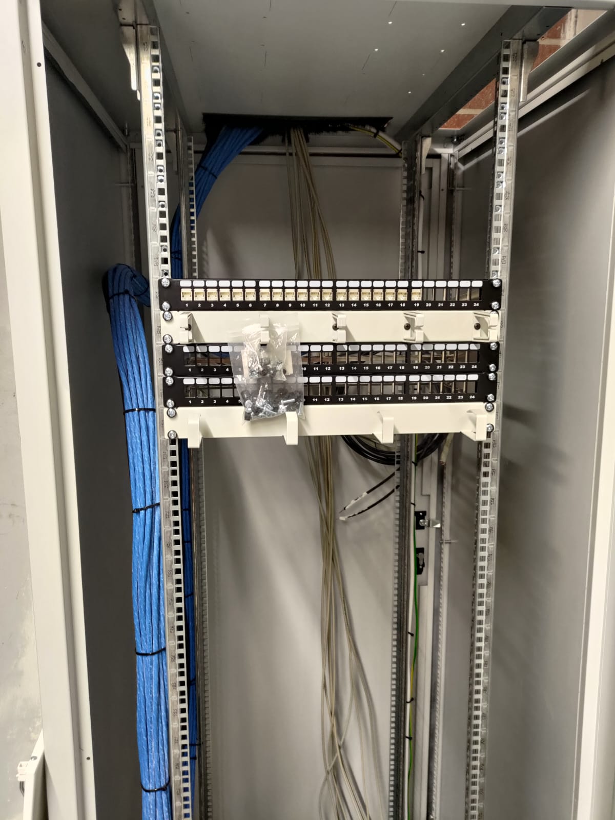 budowa strukturalnej sieci teletechnicznej (kable, szafy rackowe, gniazda)