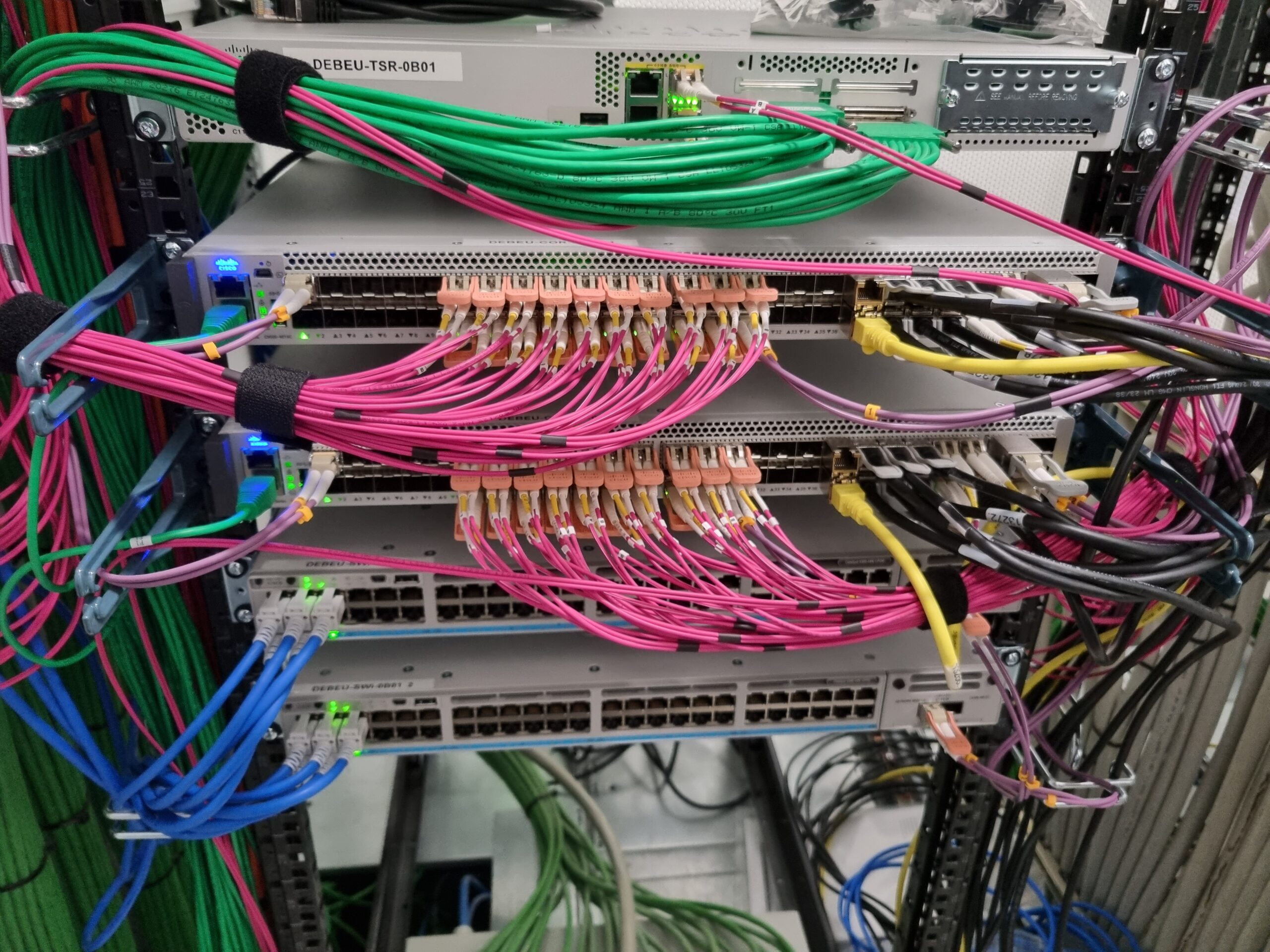 wymiana i modernizacja szaf rackowych, migracja switchy na nowoczesne modele, rozbudowa sieci światłowodowych i sieci WLAN (montaż i konfiguracja punktów dostępowych), rozbudowa tras kablowych, pomiary i certyfikacja okablowania Cat6a oraz pomiary światłowodowe OTDR