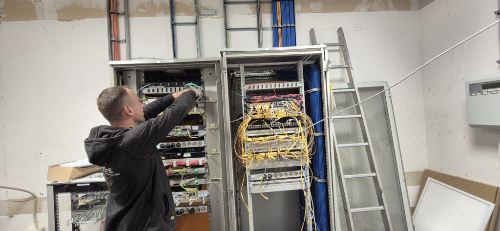 Spawamy światłowody, budujemy szafy rozdzielcze, realizujemy okablowanie strukturalne i montujemy wszelkie komponenty – od serwerów po złącza i adaptery. Dbamy o jakość każdego połączenia w sieciach teletechnicznych.